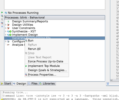 Now you can right-click on the „Generate Programming File“ header again and choose „Run“ this time this should generate a .bit file in your project folder. Transfer this .bit file to your Novena.