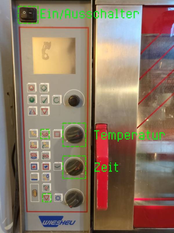 - belegte bleche in den Konvektomat geben und Tür schließen